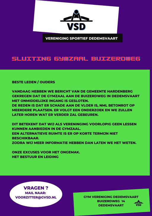 Sluiting Gymzaal Buizerdweg